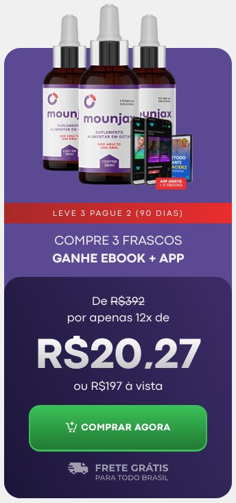 Não comercializamos o Mounjax no Mercado Livre. A venda só pode ser realizada através deste Site e não nos responsabilizamos por compras realizadas em outros sites. Evite falsificações e riscos a sua saúde.